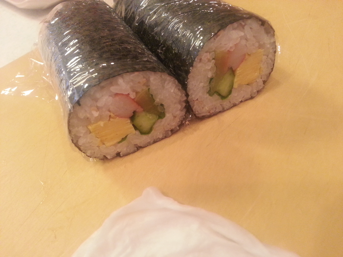 - ラップで恵方巻をきつめにしっかりと巻き付ける