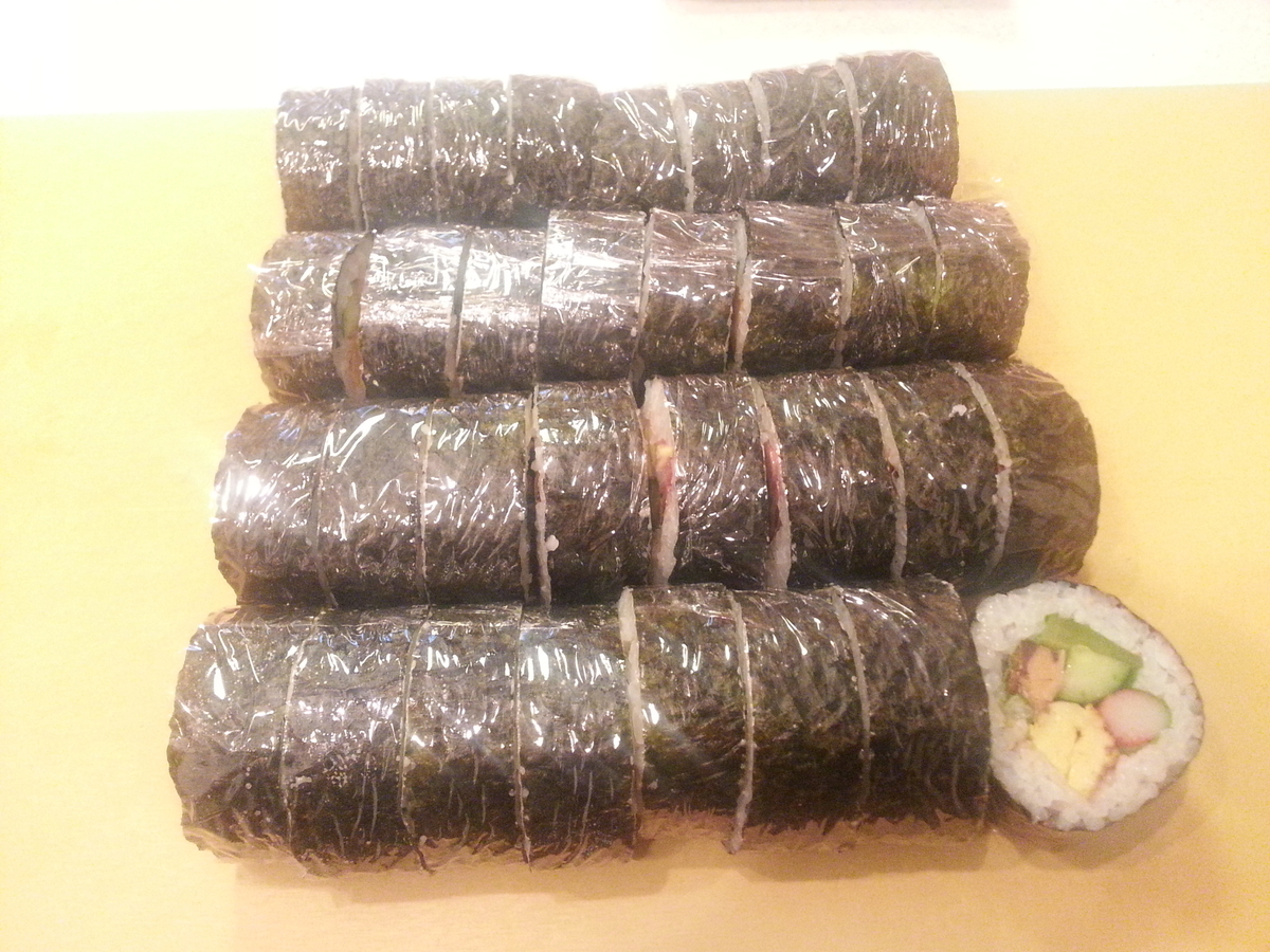 それから恵方巻あるある。せっかくキレイに巻いたのに、切る時につぶしてしまう。ちょっと残念な気分になりますよね。