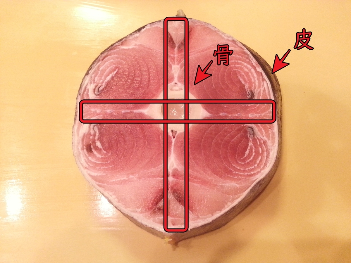 次の写真の様に十字に骨、周りに皮がありますので、これを外すだけですね。簡単です。