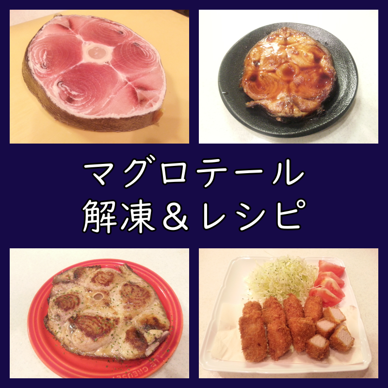 今回は、冷凍マグロテールを解凍して、照り焼き・ステーキ・カツで頂きました。まるで魚とは思えない、ホロホロでジューシーな食感がたまりませんね。美味しさの秘訣は、解凍方法です。少し面倒でも塩水と流水を使う方法が、臭みが抜けて美味しく仕上がりました。マグロの希少部位、是非お試しください。