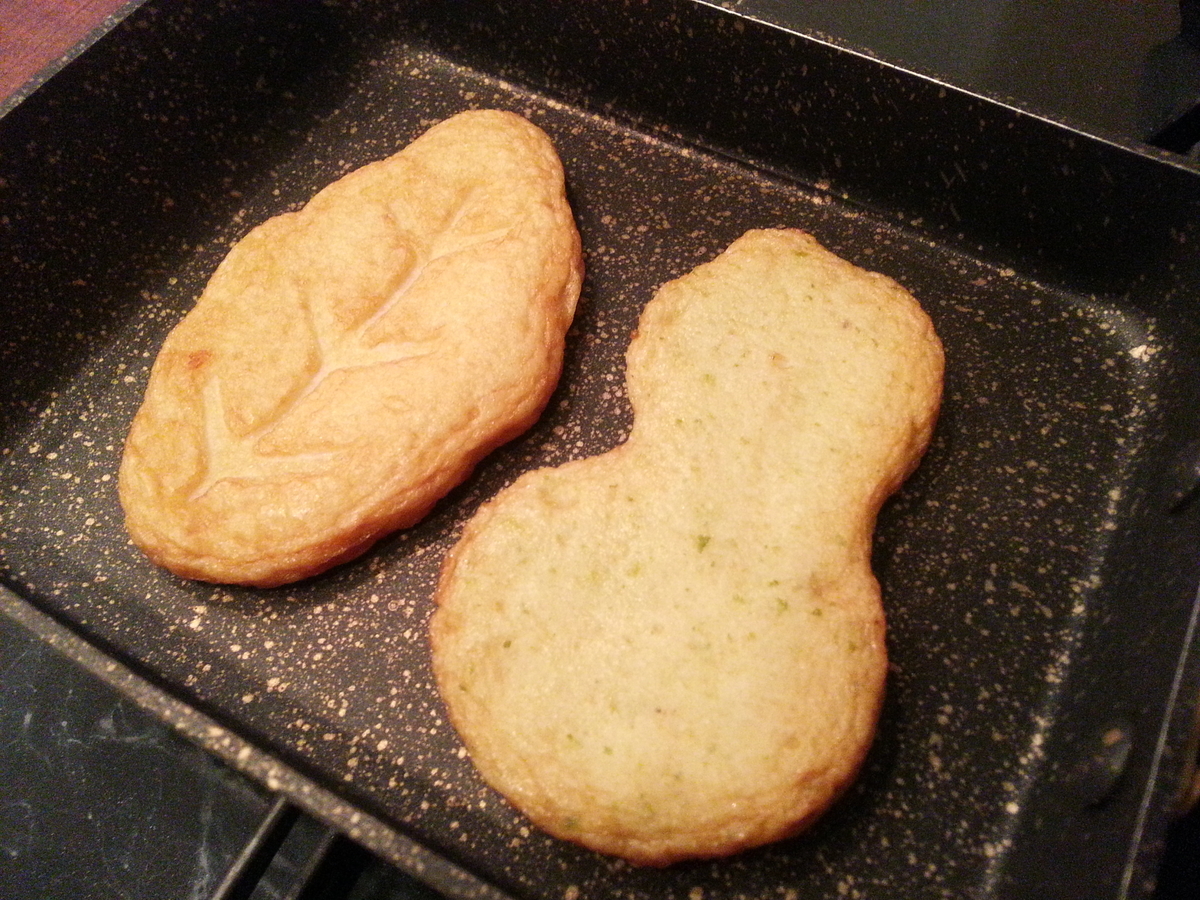 表面に軽く色付くくらい炙って頂きましょう(我が家はトースターで)。チーズとかまぼこの相性が良いのはご存じだと思います。チーズをのせても良いですね。